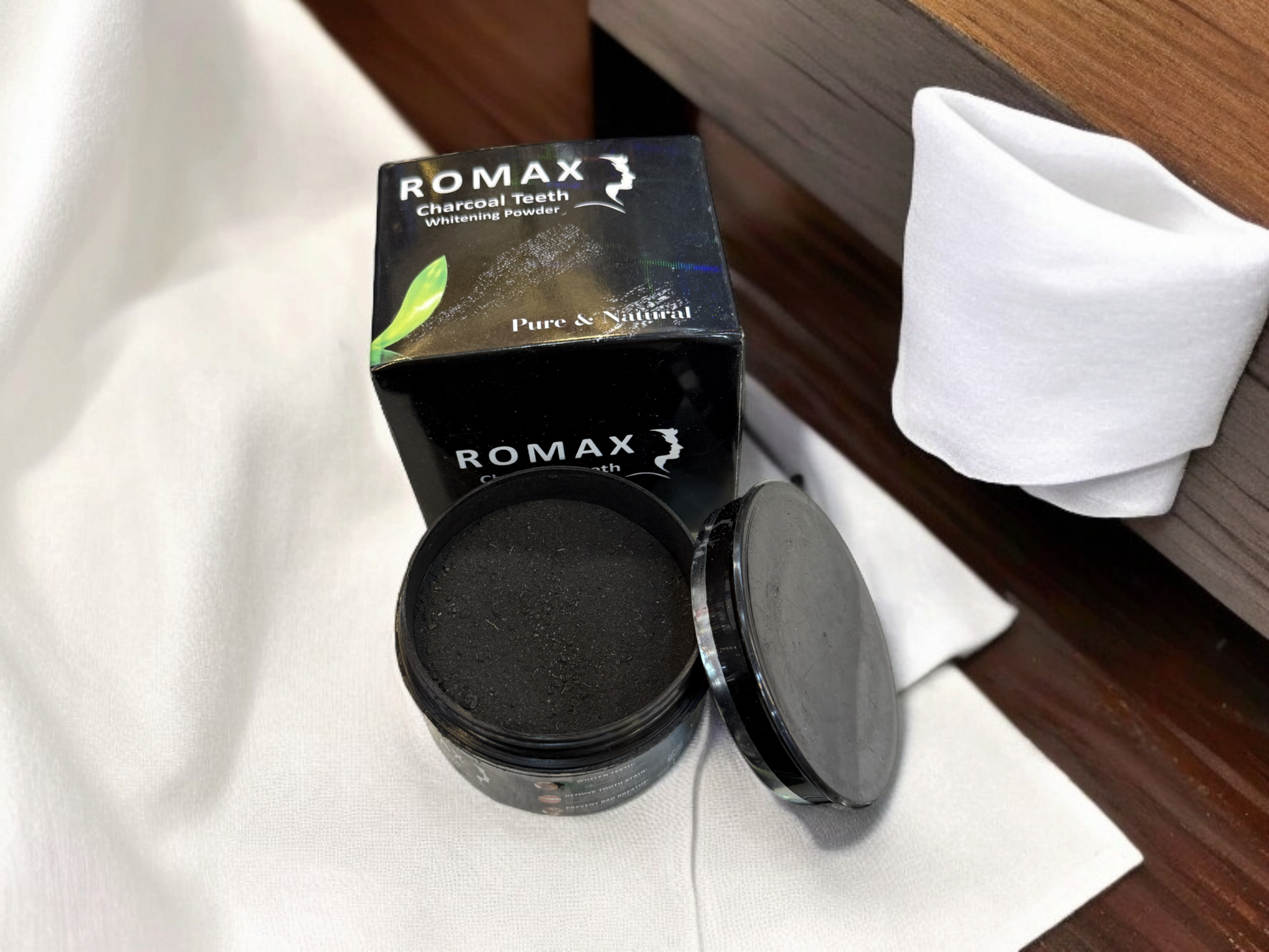Brighten your smile naturally with ROMAX Activated Charcoal Powder, designed to gently lift stains from teeth caused by coffee, tea, and smoking. Its powerful yet non-abrasive formula detoxifies your mouth while promoting fresh breath. Safe for daily use, it supports overall oral hygiene and gum health.
